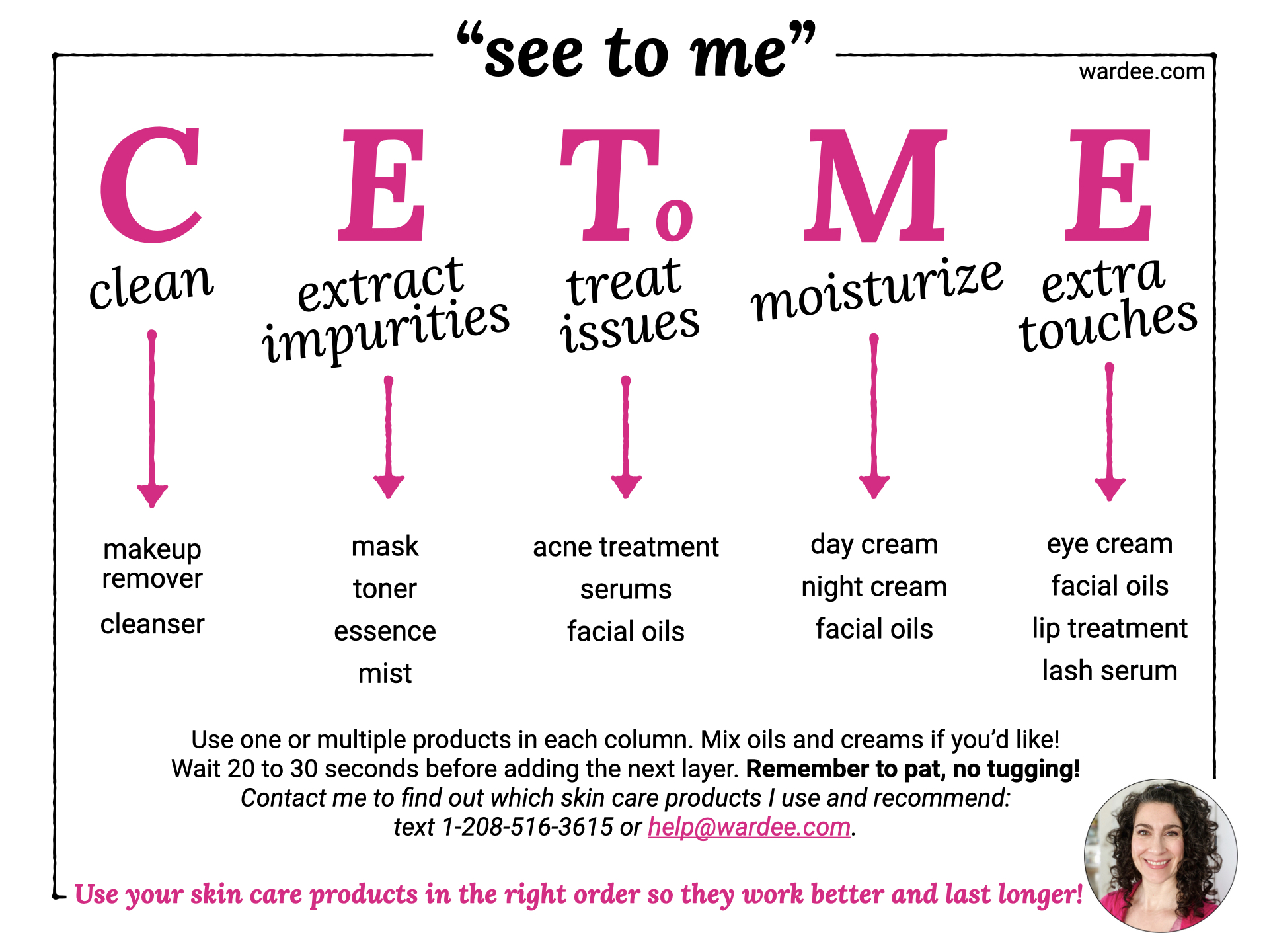It's the "right order" to apply your skin care products so they work better, you use less of each, and they last longer!